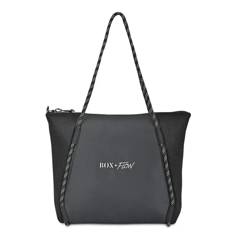 Show up to your next gym session or studio class in style. Sport mesh detail on the main compartment provides breathability to your gym gear inside. Speckled cord shoulder straps double as storage straps for securing a yoga mat, towel, or jacket. Zippered opening to large main compartment. Interior drop pocket for storing small accessories. 24" shoulder straps