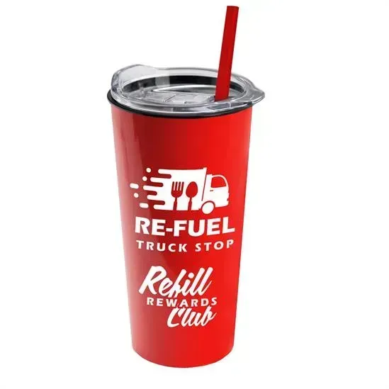Enjoy your favorite drinks wherever the day takes you with this 18 oz. double-wall insulated tumbler. Designed to help keep beverages hot or cold longer, it’s a reliable companion for commutes, road trips, and busy days on the go. The convenient slider lid and straw make sipping easy, while the sleek, comfortable design fits most cup holders and eliminates the need for a protective sleeve. The tumbler is made in the USA, the lid is imported, and the final product is assembled in the USA, making it a practical and polished choice for everyday hydration.