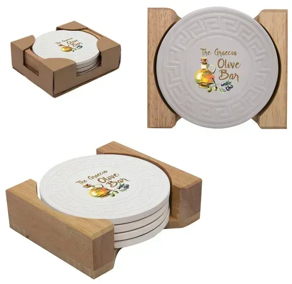Each coaster features a cork backing to help prevent scratches and provide added protection from heat and moisture. Offered as singles, duos, or full sets, this versatile option fits any gifting or promotional need. Branded packaging ensures your logo stands out, turning a practical essential into a lasting impression.