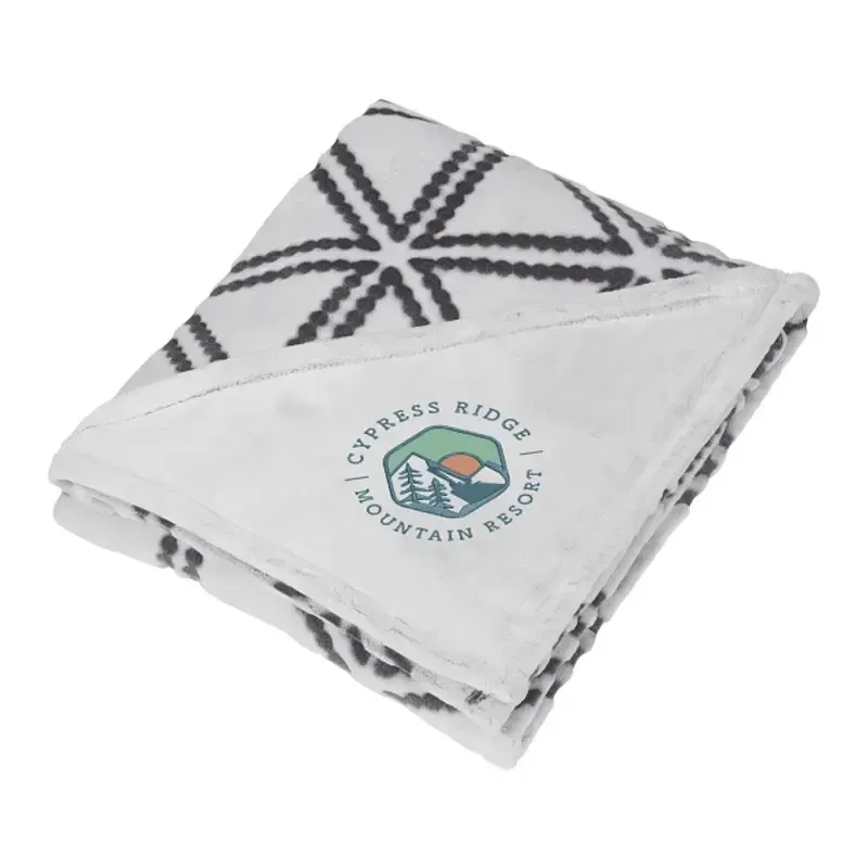 The Sculpture Print Ultra Plush Blanket is the perfect way to cozy up and keep warm, and also has a unique and retail-style 'burnout' sculpture print. Due to manufacturing process to achieve burned out design, final weight and coloration may vary slightly. Free decoration: Run charges waived on embroidery up to 10,000 stitches. Blanket measures 50" x 60" unfolded and 17" x 17" folded. This blanket is spot clean only.