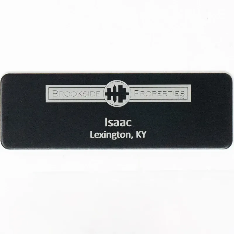 Silver City is a premium quality aluminum badge. With the laser etched imprint, the imprint shines through the matte black for a truly timeless look. It includes up to 4 lines of personalization per piece and rounded corners and magnet attachment. Utilize our Badge Warehouse program to order in bulk and release as needed.