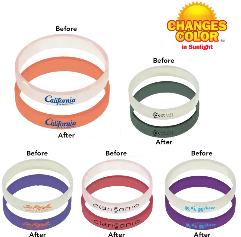 The Sun Fun Bracelet adds a burst of excitement to any event. It changes color when exposed to direct UV sunlight, creating a bold and interactive effect that draws attention outdoors.