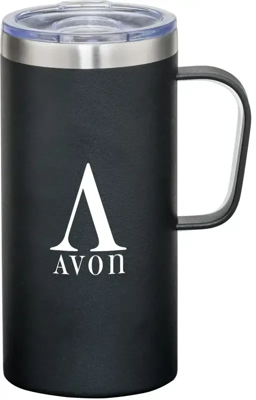 Promote on-the-go with our 20oz Custom Taiga Mug. Made from high-quality stainless steel, it's perfect for both hot and cold beverages. Features a handy sliding sip lid and a sturdy handle for ease of use.