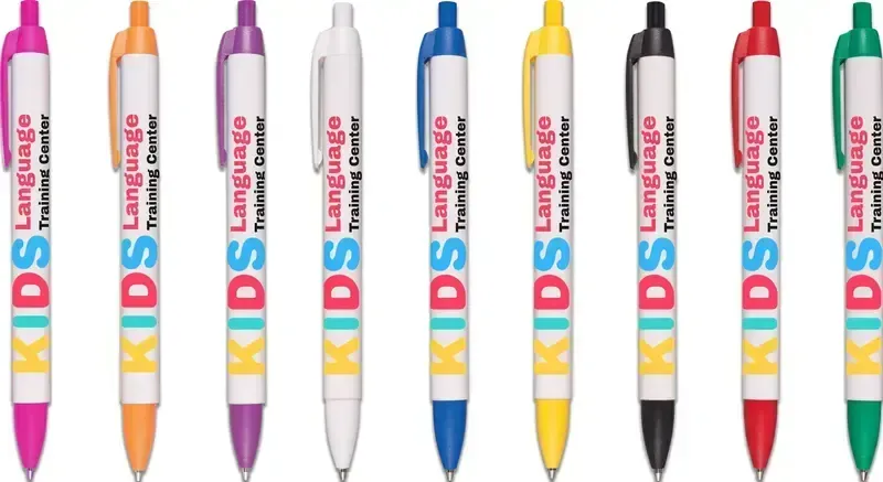 Jumbo-sized retractable pen with full color barrel and solid color trim: