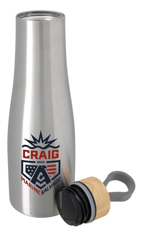 This eco-friendly bottle stands out from the crowd with its faux woodgrain lid and sleek shape. The easy-carry silicone handle makes it easy to tote around with you all day, and double-wall vacuum insulation keeps your drink cool for up to 10 hours.