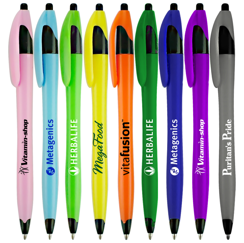 Vibrant retractable ballpoint pen featuring bold tropical barrel colors that stand out instantly. Designed with a smooth click-action mechanism, contrasting grip and clip accents, and a lightweight, comfortable feel for everyday writing. The bright color palette delivers high visual impact and generous imprint space for logos or messaging. A fun, energetic choice for events, wellness brands, trade shows, and promotional giveaways where color matters.