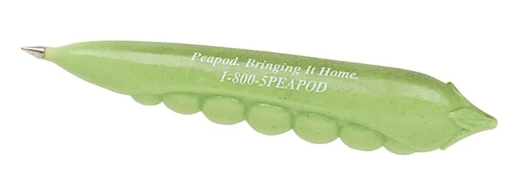 Make your brand the talk of the town with this unique peas-in-a-pod shaped pen! Veggies aren't just for eating — they're now a fun writing tool! Measuring 6.5" x 1", this ballpoint pen features a fine tip and a playful design that resembles a pod of peas, making it a memorable way to promote your business. Customize it with your company name, logo, or message to leave a lasting impression on customers. Perfect for standing out at events, giveaways, or promotions — this veggie-tastic pen is a must-have! This product is not intended for use by children or pets. It may present a choking hazard to children under 3 years of age.
